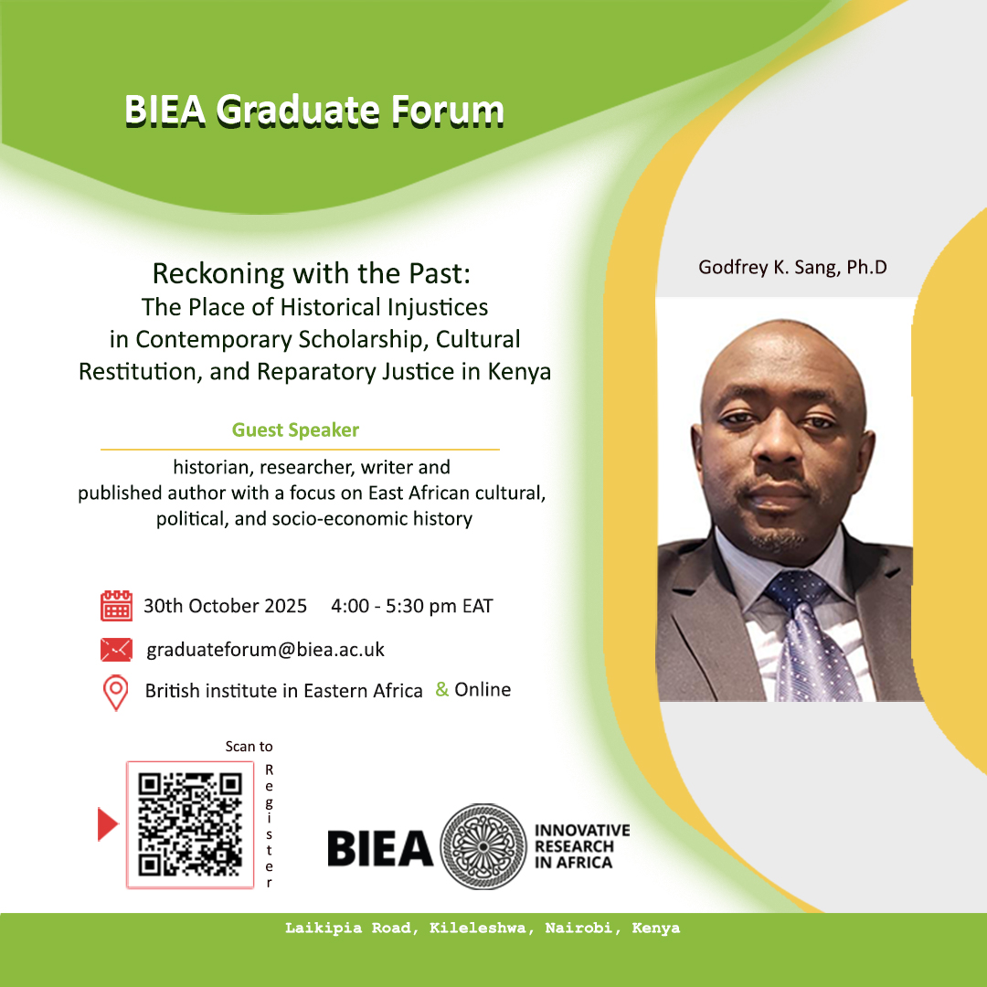 Historical injustices constitute a central analytic category in contemporary Kenyan scholarship, particularly within debates on coloniality, restitution, and reparatory justice. Far from static episodes of the past, they persist as structural legacies embedded in land tenure, cultural heritage, and extractive economies. This talk interrogates the epistemological and political stakes of engaging historical injustices in twenty-first-century scholarship, foregrounding the Talai and Kipsigis communities of Kenya as a paradigmatic case. Drawing on archival and field research research, policy taskforces, and community advocacy, it examines the intersecting dynamics of land alienation, forced displacement, and the agro-colonial tea economy, situating them within global debates on the restitution of human remains, decolonial heritage, and reparations. I argue for an interdisciplinary praxis – bridging history, law, political economy, and memory studies – that both theorizes and actively participates in projects of cultural restitution and reparatory justice. In so doing, the humanities can reconfigure the normative boundaries of historical inquiry and serve as a vital interlocutor in struggles for justice and cultural healing.